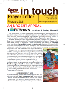 Lurgan Baptist Church has had a long association with Acre with two of our own members, Tom and Lucimar Geddis, being missionaries with the organisation.
